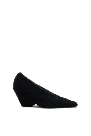 - Statement pointed pump in black shearling upper
