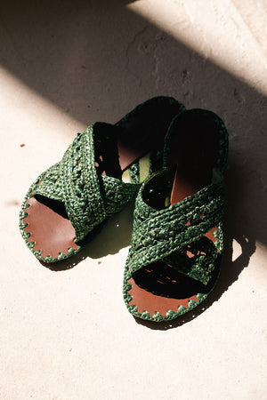 Raffia woven slide