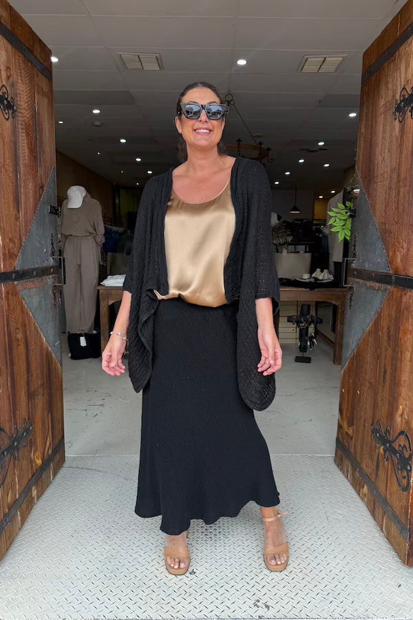 La Bottega di Brunella garments are entirely made in-house – from yarn to garment – in the label’s workshops in Positano. Brunella takes its creative drive from a fusion of intricate looming techniques and timeless designs, made to be worn and cherished for years to come.