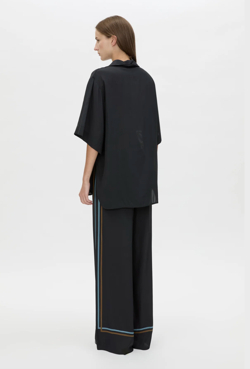 CAMILLA AND MARC Frida printed silk short-sleeve shirt with V-neckline. Boxy fit. Double hook-and-eye closure at centre front neckline. Side splits, curved hem.