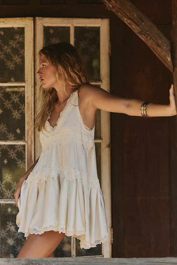 Romance awaits with this floaty mini slip from Intimately, featured in a silky, tiered design with lace trim for a truly delicate detail.