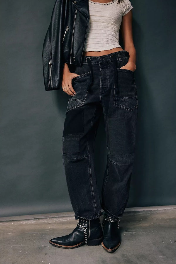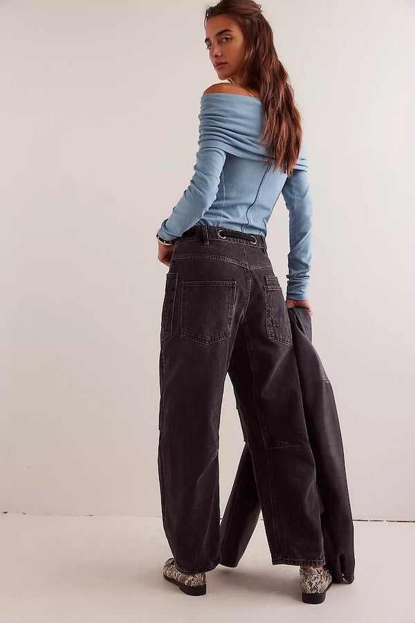MOXIE PULL-ON BARREL JEANS - NIGHT HAWK