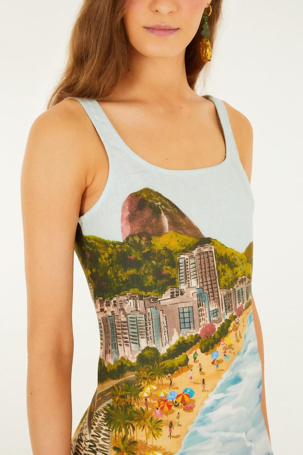 Step into tropical charm with the Multicolor Copacabana Beach Euroflax™ Premium Linen Mini Dress from FARM Rio. This playful piece features a vibrant palette inspired by Brazilian sunsets, woven into breathable, premium linen. The square neckline frames the shoulders delicately, while the relaxed silhouette dances freely with every step. Its subtle texture and lively colors bring a joyful energy, perfect for sunlit strolls or evening gatherings by the shore.