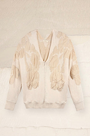 Our oversized jumper is encircled by a play of knits, with a jacquard design in an asymmetrical pattern. It is made of a cotton blend for a model placed under the sign of comfort and style.