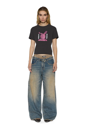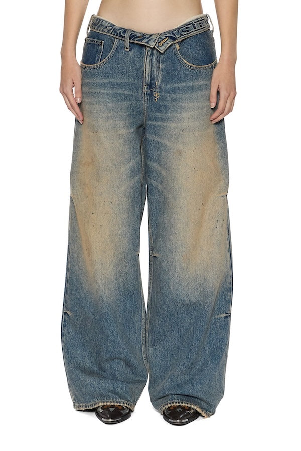 The Ksuper Dune Jean is our baggiest fit yet, featuring an exaggerated oversized silhouette with a super low rise and full length. Made from premium indigo denim, this style features a heavy tinted wash with contrast fading on high-wear areas and subtle oil blotches for an authentic worn-in look. Design details include a fold-down flipped waistband with Ksubi embossed branding, classic five-pocket styling, Ksubi branded hardware, T-box and 3x4 embroidery, and a removable pocket tag attached to the wearer's right back pocket. This fit is designed for maximum comfort and a street-style edge. Style back with the Oversized LS Shirt Dune