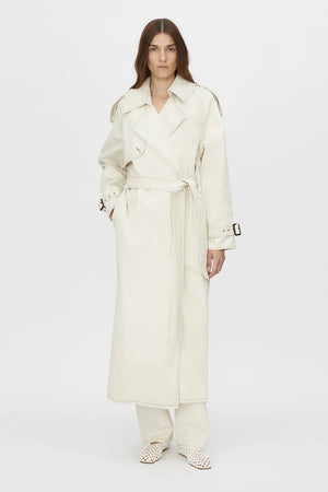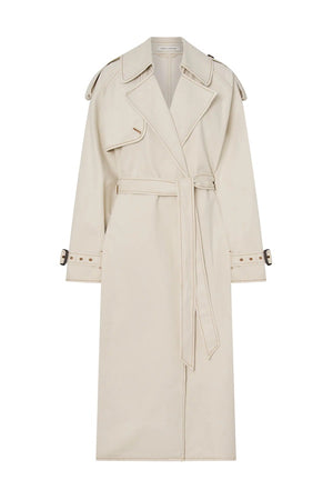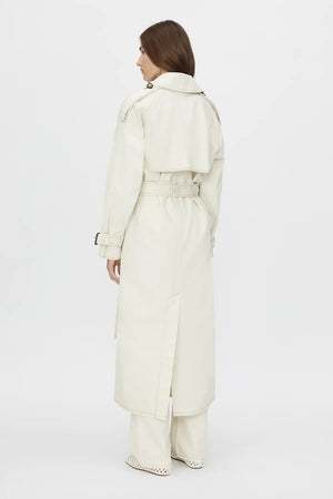 CAMILLA AND MARC Calyx Denim Trench Coat in Light Stone Wash.