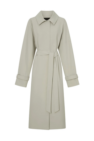 The Dia Car Coat offers a timeless, versatile design with a sleek single-breasted silhouette and concealed placket for a refined look. Raglan sleeves and a dropped armhole create an effortlessly modern fit, while adjustable oversized sleeves and a self-fabric tie belt add functional style. Finished with a back storm flap, twin needle top stitching, and a centre back vent, this fully lined coat combines precision craftsmanship with practicality for any season.