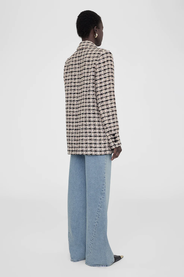 The Diana Blazer features a traditional roomy-relaxed fit with structure. This style is considered more oversized than the Madeleine Blazer, yet slimmer than the Classic Blazer with narrower shoulders and a slightly longer hem. Take your true size. If you are in between sizes, consider taking one size down if a closer fit is preferred.