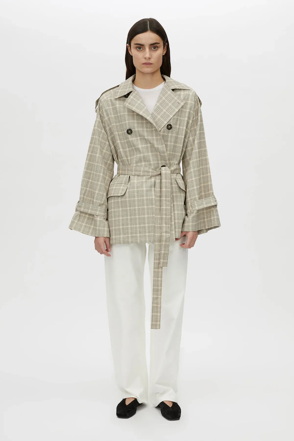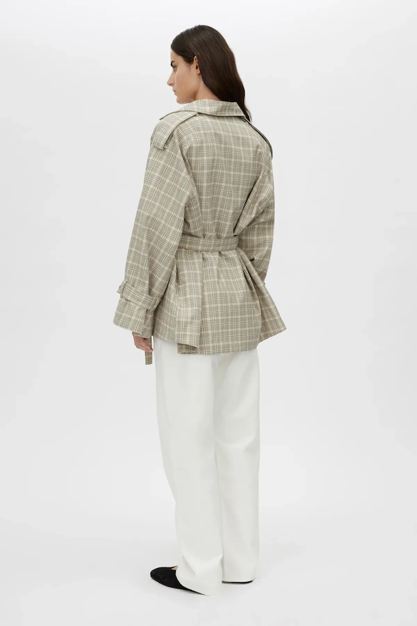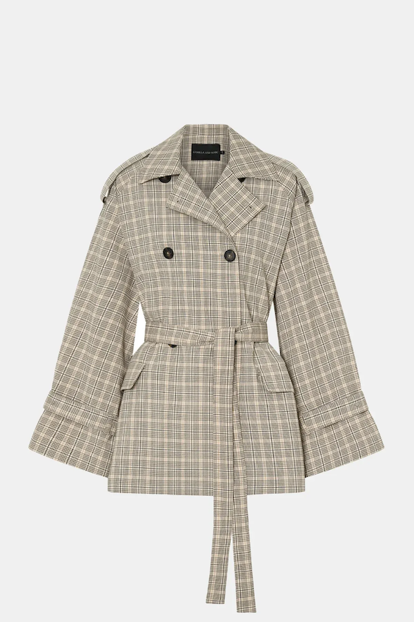 CAMILLA AND MARC Kinetic Tattersall Trench in Taupe Check.
