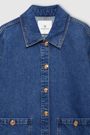 The Luca Jacket is a modern utility-inspired style made from midweight 100% regenerative cotton denim without stretch in a clean blue wash.