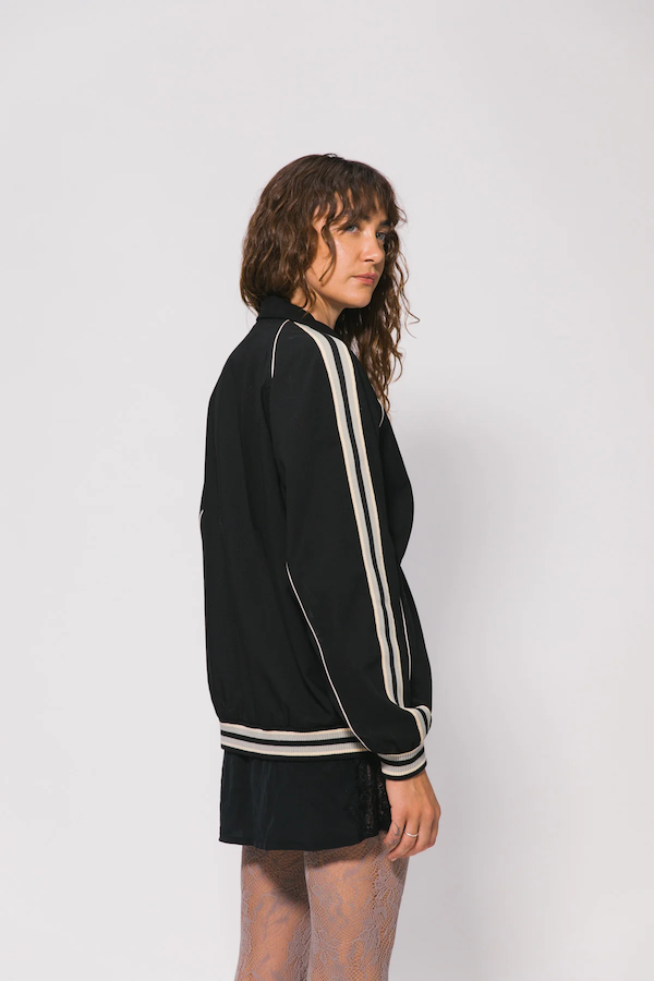 Key features include: Ribbed cuffs and waistband with contrast stripe detail Breathable polyester birds eye mesh lining for added comfort Versatile double zip closure Soft-touch fabric blend: 72% Polyester, 12% Viscose, 2% Spandex, 7% Tencel, 7% Wool This jacket bridges everyday wear and understated tailoring—ideal for layering across seasons.