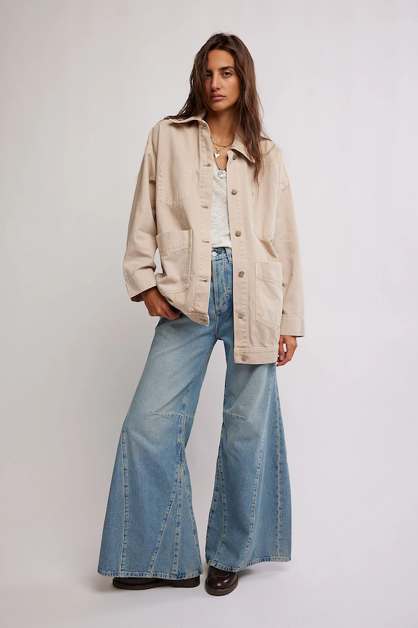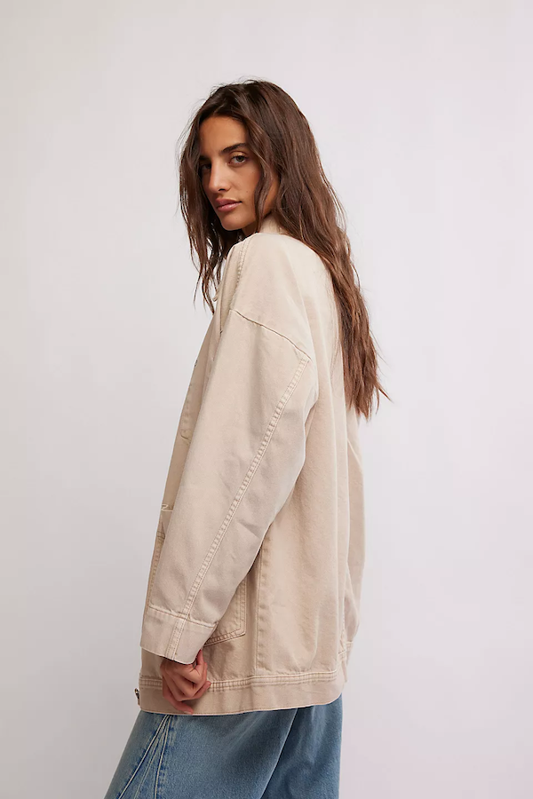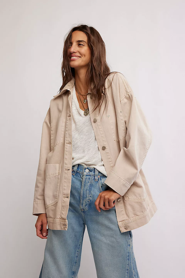 Traditional with a twist, this denim chore jacket from We The Free is featured in an oversized, slightly structured design with patch pockets and that perfect washed finish.