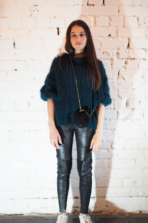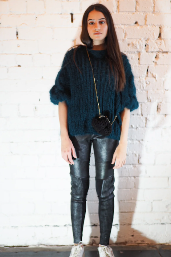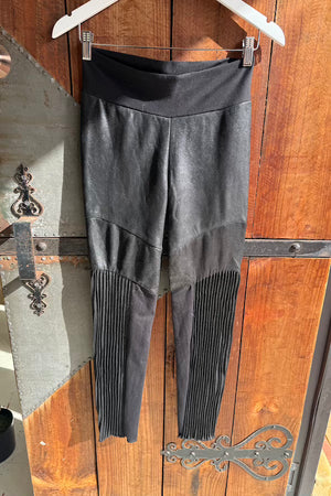 Amano colab jersey/leather legging features stretch waist for added comfort and pin tuck details.