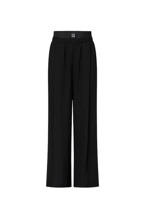 The Aura Pant features a soft suiting fabric with a contrast satin waistband for a refined finish. Designed to sit comfortably mid-waist, the elasticated waistband offers ease of movement while maintaining a tailored silhouette. The monogram jacquard label at the centre front adds a subtle yet distinctive touch.