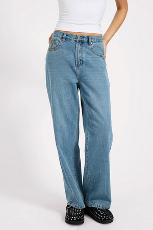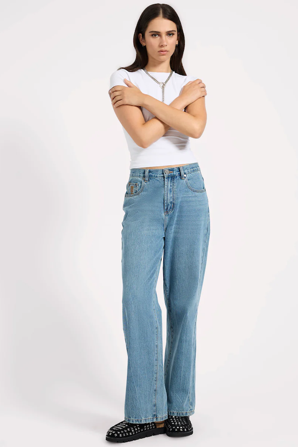 Slouchy, structured and made to move – the BLUE CRUSH BAXTERS are your new go-to wide leg jeans with an effortless drop crotch fit. Cut mid at the waist and low-slung through the hips, they bring relaxed energy to a classic 5-pocket shape with just enough attitude. A modern staple for fans of wide leg denim and all things denim jeans.