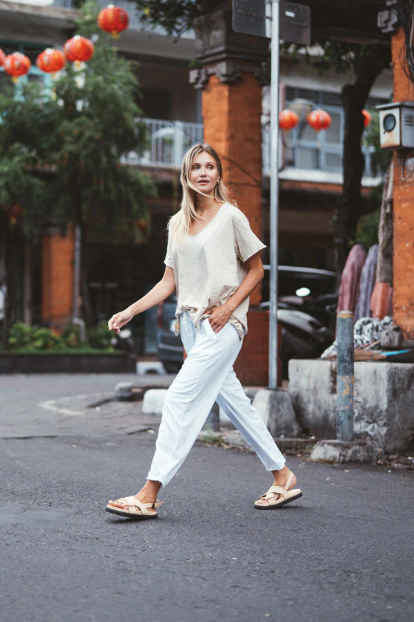 Paros is a relaxed fit lounge pant. Elastic waist with drawstring for comfort and exposed side pockets.