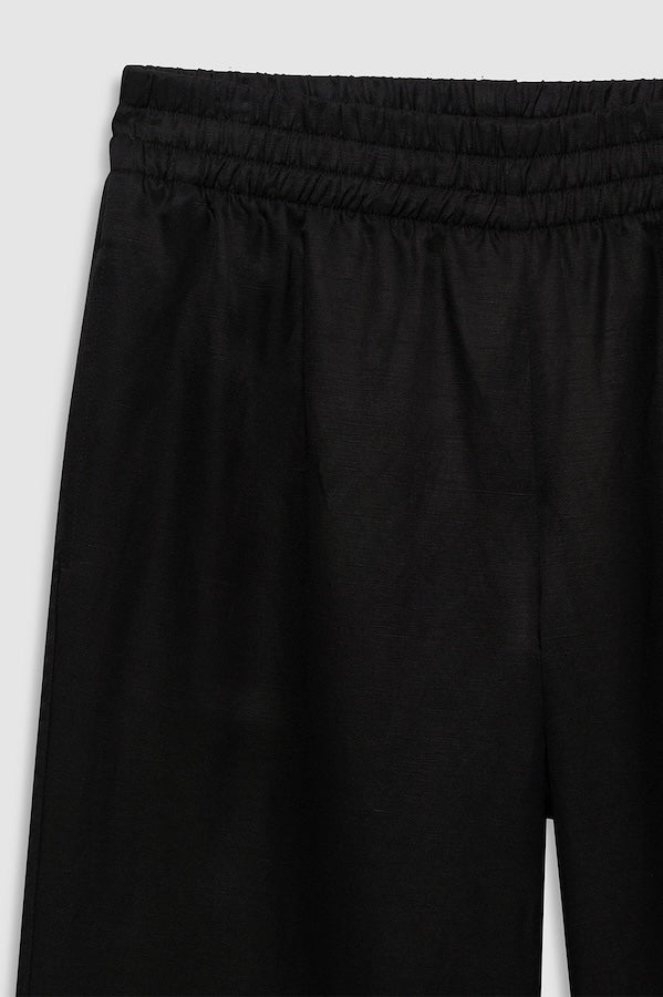 The Soto Pant is a relaxed, wide-leg style made from a light and breathable linen blend with a slight sheen.
