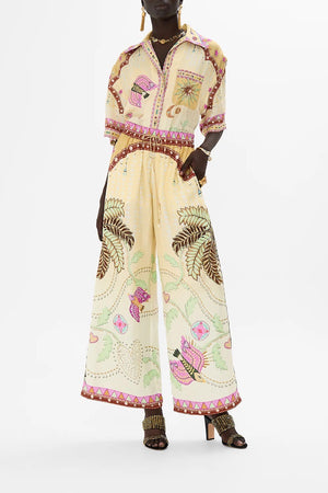 Designed in Australia, The Aswan Abstract Straight Leg Pant is a love story of traditional handicrafts and hand painted camels, crescent moons, and palm fronds, embedded in exquisite architectural borders. Lovingly handcrafted, these luxury silk pants feature an adjustable high waistline with a relaxed wide leg that falls to a full-length hemline. An unparalleled statement piece by CAMILLA.