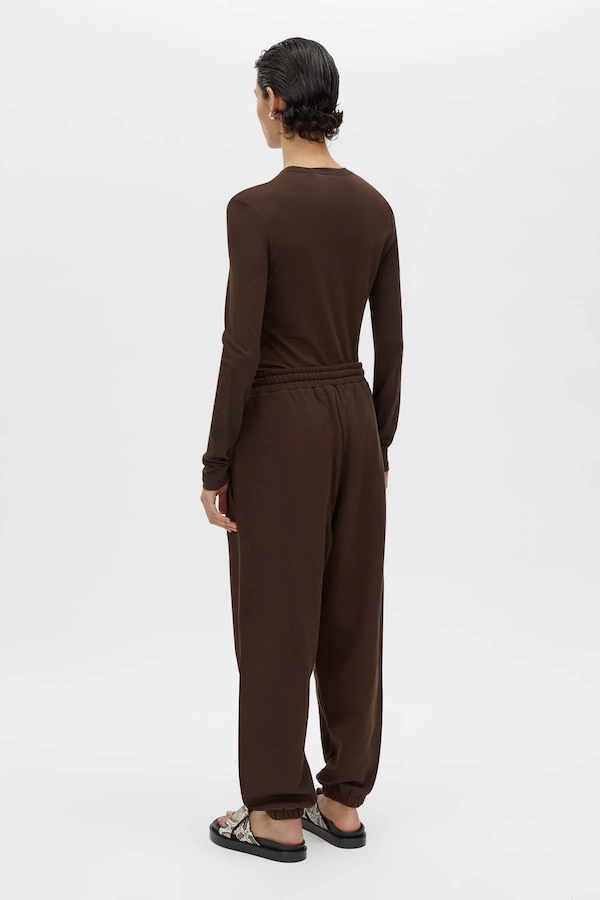CAMILLA AND MARC Tia Logo Track Pant in Bitter Chocolate.