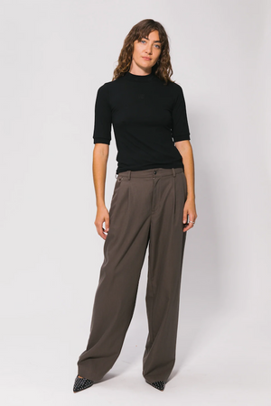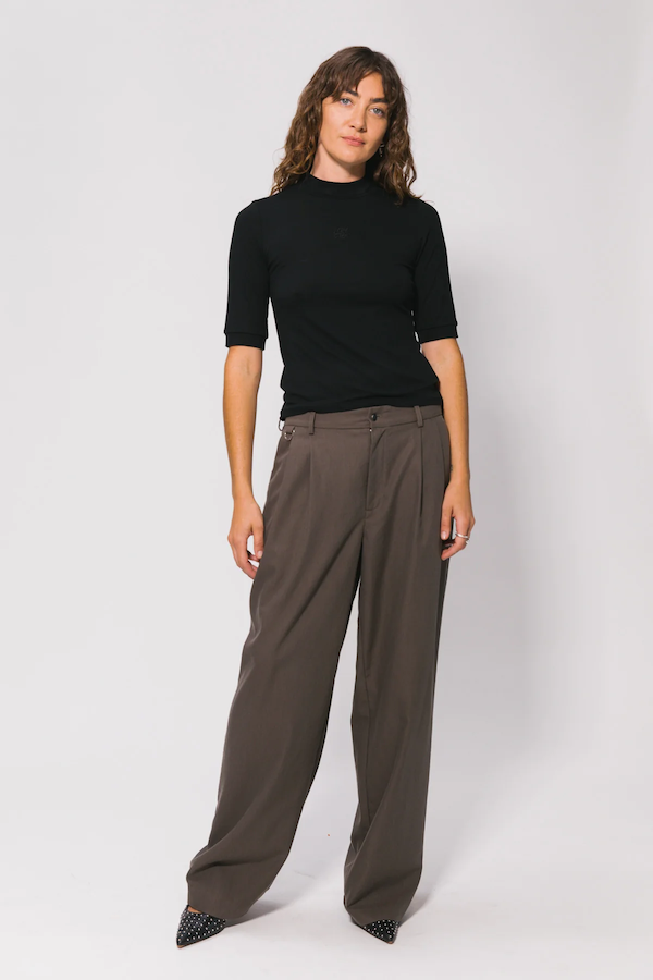 The Charcoal Westwood Pant brings a relaxed fit with four front pleats for structure & stud closure and zip fly. They are made from a fabric blend and feature
