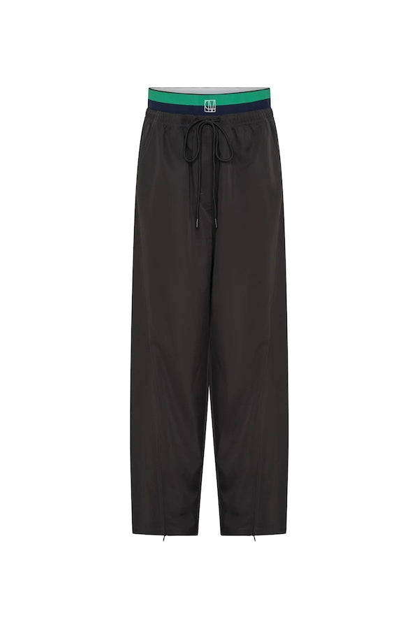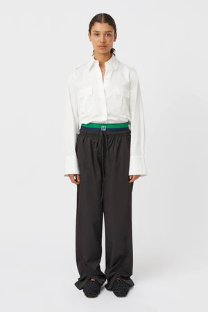 The Yara Pant offers a modern twist on comfort and style, featuring an elasticated waistband adorned with a wide, exposed branded jacquard monogram. The faux fly design detail adds a contemporary touch, while the mid to low waist fit ensures a relaxed yet flattering silhouette. Perfect for elevating any casual outfit, the Yara Pant effortlessly combines practicality with a bold fashion statement.