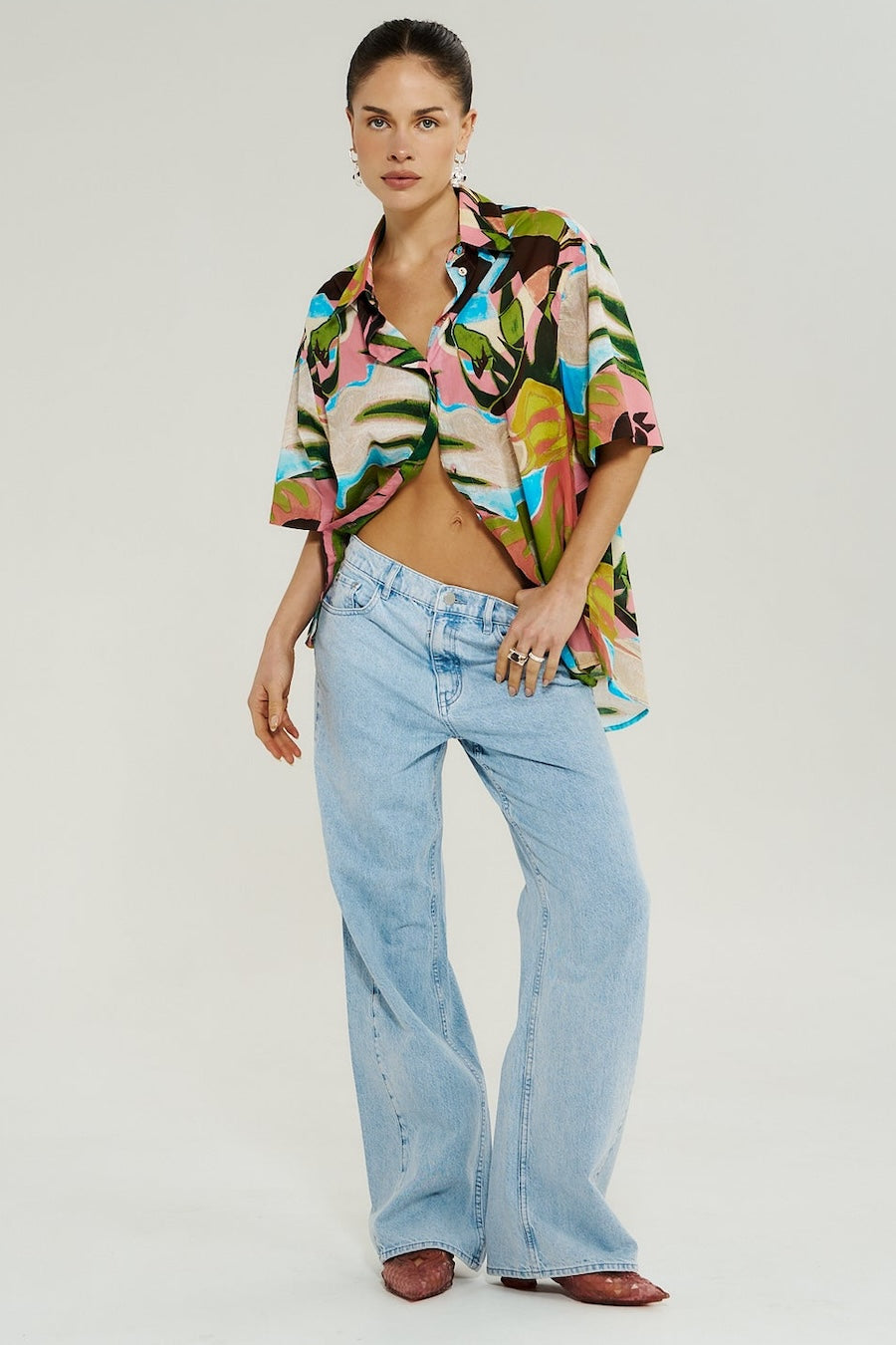 The Big Shirt made from a linen/ rayon blend featuring the hand-painted Wonderland print, designed for a classic and oversized fit.