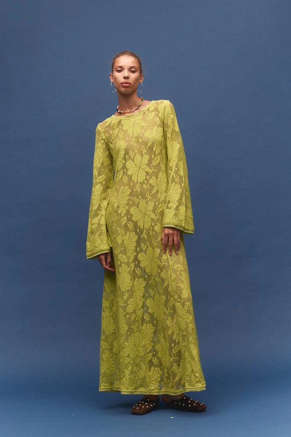 Cut in a vivid citron lace, the colour feels bright and alive, balanced by the delicate floral texture woven throughout.