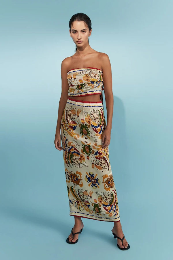 Introducing the Dancer Pencil Skirt by Antipodean, where imagination meets elegance. Each skirt features an original in-house placement print, thoughtfully hand-drawn by our founder. Crafted from an elegant silk linen fabrication, it’s a style that exudes luxury. The tuck detailing at the waist adds intrigue to the silhouette. Complete with a centre-back zip entry and high back vent for ease of wear and movement, as well as being fully lined for comfort. Bridging the gap between classic and cool, it’s a wardrobe statement you’ll reach for again and again.