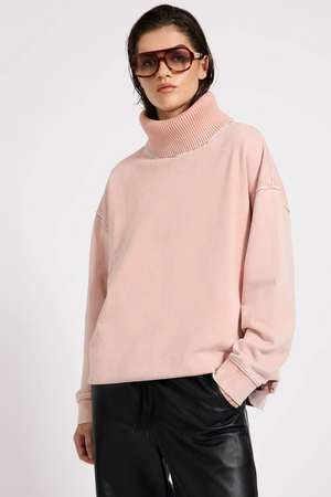 • FLEECE ROLL NECK SWEATER - BLUSH PINK