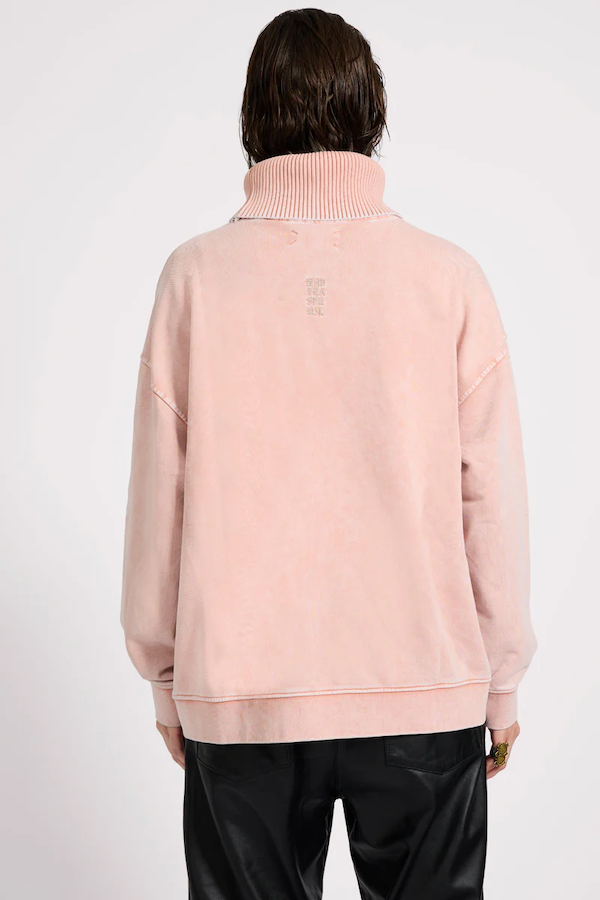 The BLUSH PINK FLEECE ROLL NECK SWEATER is oversized, soft, and made for easy layering. Cut in a slouchy silhouette with a chunky ribbed roll neck, it’s the ultimate throw-on piece in super-soft cotton fleece.