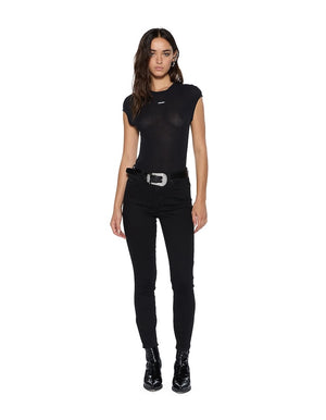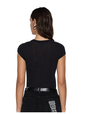The Staple SS Tee Black is a fitted short sleeve tank with a crew neckline. Made from a cotton blend fabric with Ksubi logo embroidery on the front chest, cross dollar embroidery at front and T-box embroidery at the back hem.