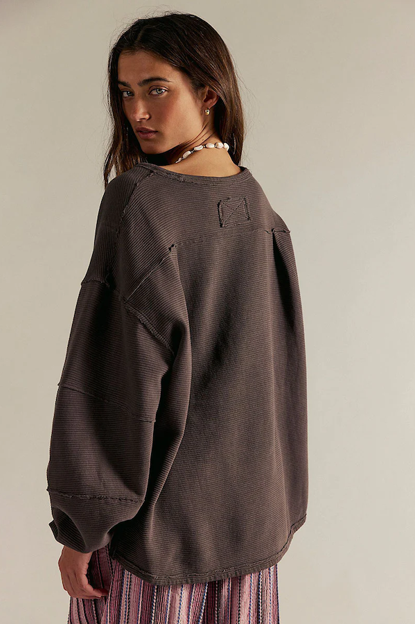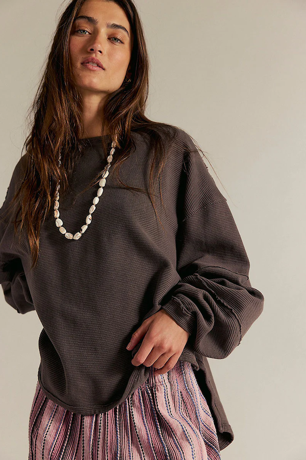 An elevated take on the classic tee, this long-sleeve from our We The Free collection features a ribbed fabrication and slouchy silhouette with defined seams and a scoop-neckline.